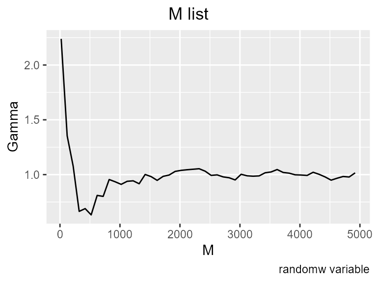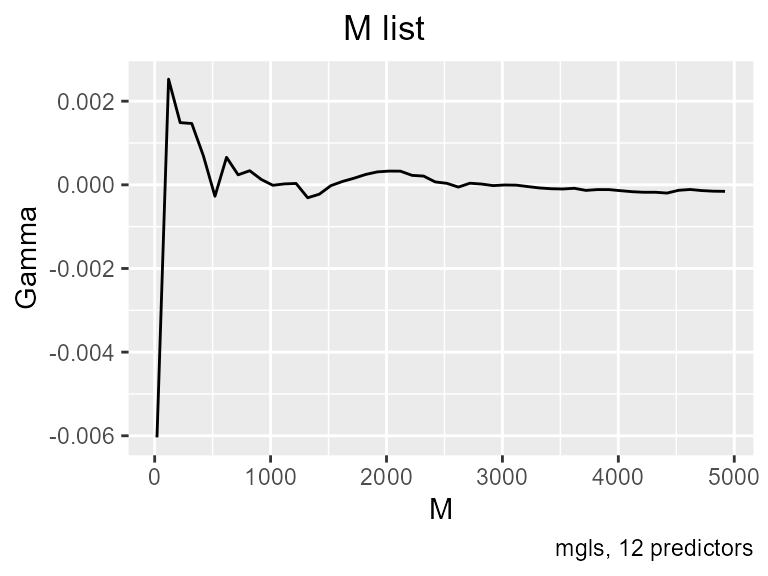 The function get_Mlist computes Gamma for larger and larger portions of the data set. What we are looking for in an M list is stability - after a certain point, Gamma should settle to an estimate that doesn’t drift as more data is added.
