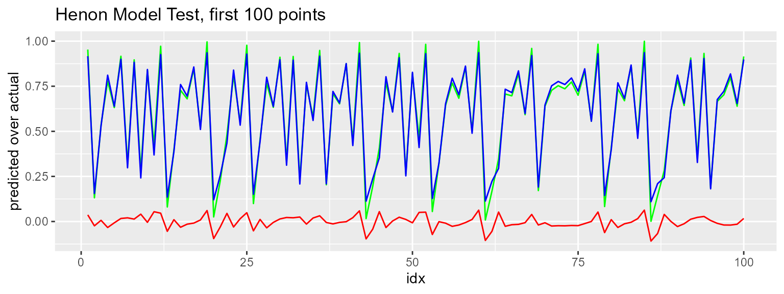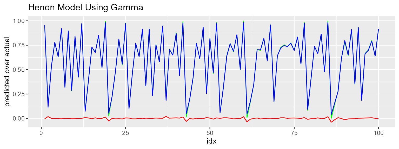 #> [1] 0.03076592This does considerably better. Gamma still says we can cut the error in half but I’m not going to fuss around with it. Neural net building is a topic for another vignette, using neural net software that has some documentation and more than one hidden layer.
